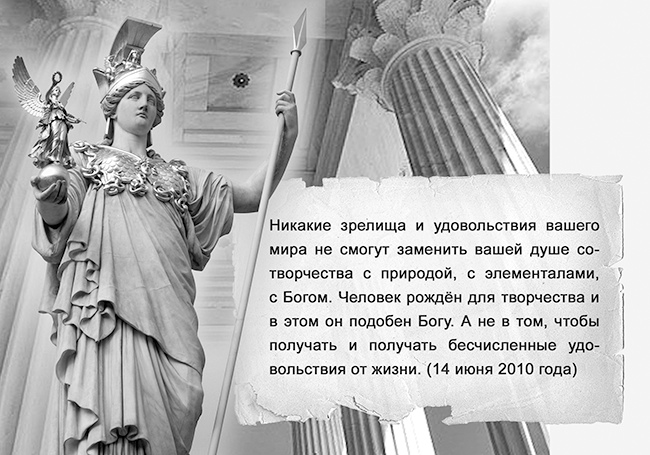 Никакие зрелища и удовольствия вашего мира не смогут заменить вашей душе сотворчества с природой, с элементалами, с Богом. Человек рождён для творчества и в этом он подобен Богу.